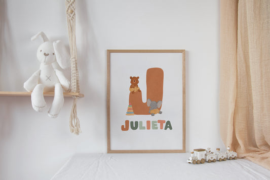 Cuadro decorativo para la habitación del bebé Letra + Nombre