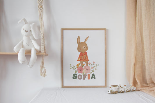 Cuadro decorativo para la habitación del bebé conejita + Nombre