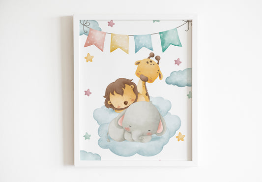 Cuadro decorativo para la habitación del bebé Animalitos Durmiendo